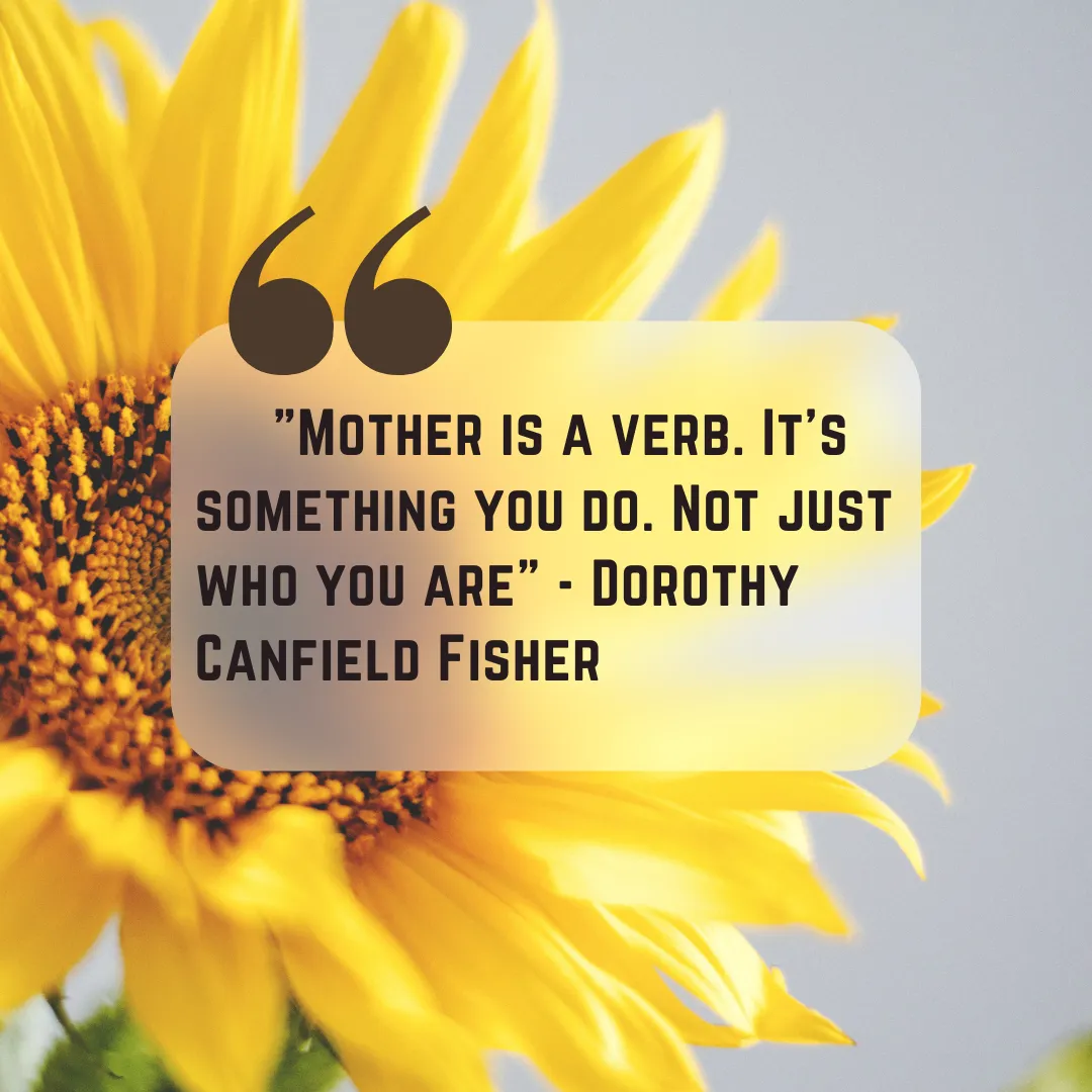 14. “Mother is a verb. It’s something you do. Not just who you are” – Dorothy Canfield Fisher